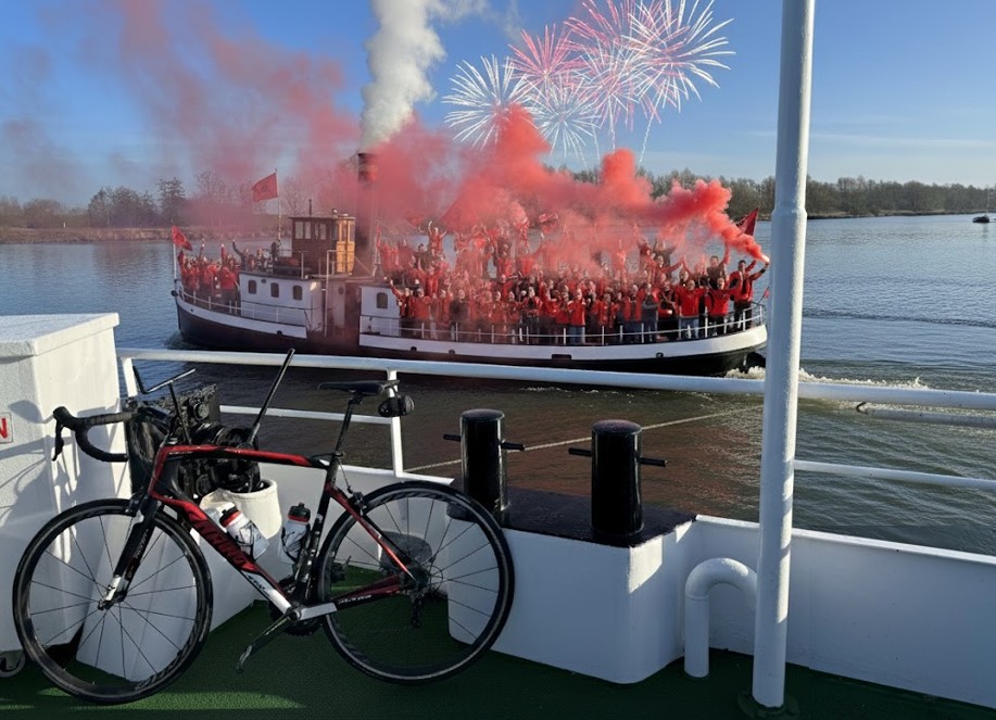Tijdens de overtocht spotte hij nog een stoomboot vol supporters op weg naar Leusden om de kroonjuwelen van het korfbalveld en hun strijd om de gunst van de goedgevulde korfbaltempel te aanschouwen.